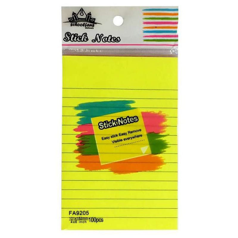 استیک نوت خط دار 100 برگ 5 رنگ اسکول فنس School Fans سایز 101x152mm مدل FA9205- سایز 101×152 میلیمتر : فضای بزرگ برای یادداشتهای مفصل.
