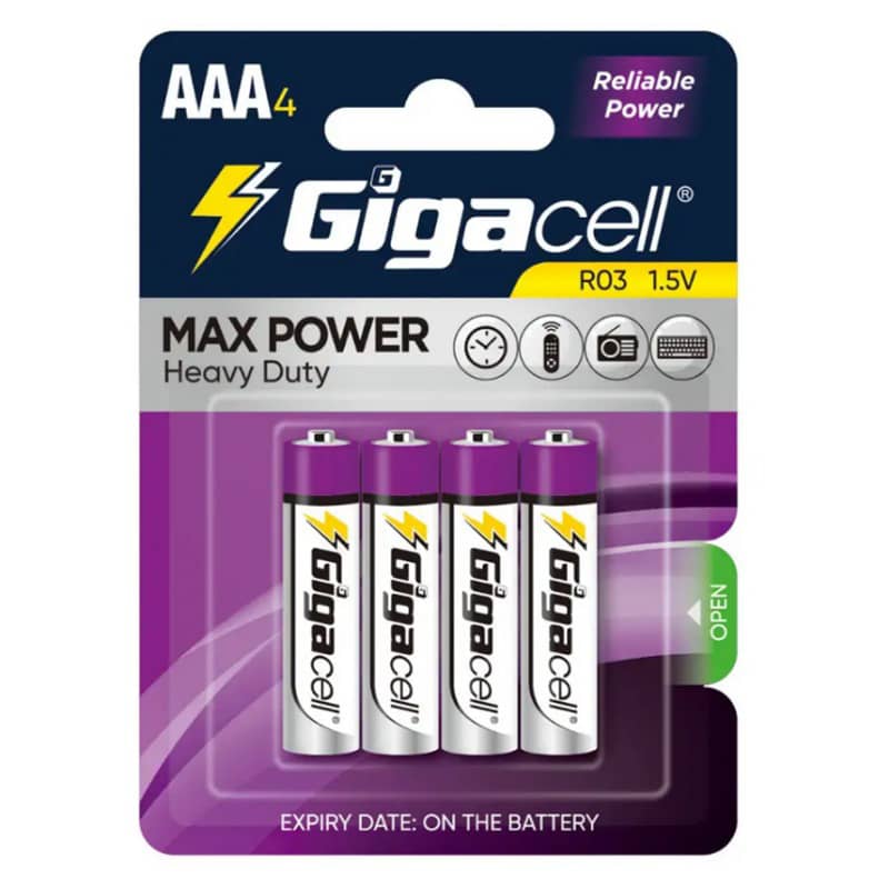 باتری نیم قلمی گیگاسل Gigacell مدل Max Power بسته 4 عددی- ولتاژ 1.5 ولت آلکالاین : جریان پایدار برای دستگاههای پرمصرف.