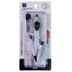 1.ساختار مقاوم و باکیفیت: این پرگار از جنس فلز مقاوم و پلاستیک فشرده ساخته شده است که تعادل مناسبی بین استحکام و وزن سبک ایجاد میکند. بخش فلزی آن شامل بازوهای پرگار و نوک سوزنی است که دقت و پایداری را در حین ترسیم تضمین میکند، در حالی که قطعات پلاستیکی به کاهش وزن و راحتی استفاده کمک میکنند.